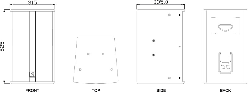 單元組成 Drivers LF:1*10",Voice-coil:2.5"/HF:1*1",Voice-coil:1.73" 頻率響應(yīng)(±3dB) Frequency(±3dB) 65-18000Hz 靈敏度(1M、1W) Sensitivity(1M、1W) 95dB 最大輸入聲壓級(jí) Maximum SPL 122dB 額定阻抗 Nominal Impedance 8 ohm 功率 Rated Power 300W AES/600W Peak 推薦放大器功率 Recommended AMP 400W/8 ohm 分頻點(diǎn) Crossover Frequency 2000Hz 覆蓋角度(-6dB) Dispersion(-6dB) 90o*60o 輸入連接器 Connectors 2*Speakon NL4MP 凈尺寸(H*W*D) Dimensions(H*W*D) 525mm*315mm*325mm 包裝尺寸(H*W*D) Packing Dimensions(H*W*D) 603mm*388mm*396mm 凈重量(KG) Net Weight(KG) 17.5 包裝重量(KG) Gross Weight(KG) 19.2 |