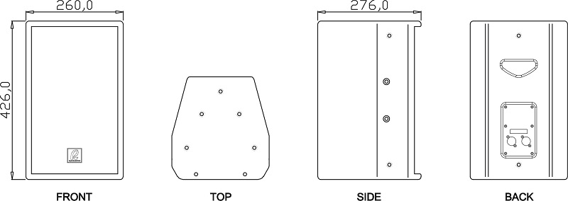 箱體外形 Physical 梯形 箱體材料 Enclosure Material 15厘厚樺木夾板 箱體網(wǎng)面 Enclosure Material 模壓鋼制圓形孔網(wǎng)面,內(nèi)貼專業(yè)防水透氣爆破棉 表面漆 Finish 水性環(huán)保多層耐刮、耐腐蝕、防水油漆 吊裝點(diǎn) Handing Position 18個(gè)M8吊掛螺絲孔位 支撐座 Pole Mount 底部一個(gè)Φ35mm支撐座 |